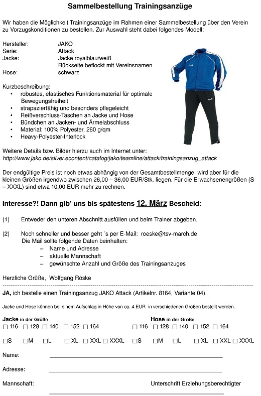 Bestellung per E-Mail an roeske at tsv-march.de